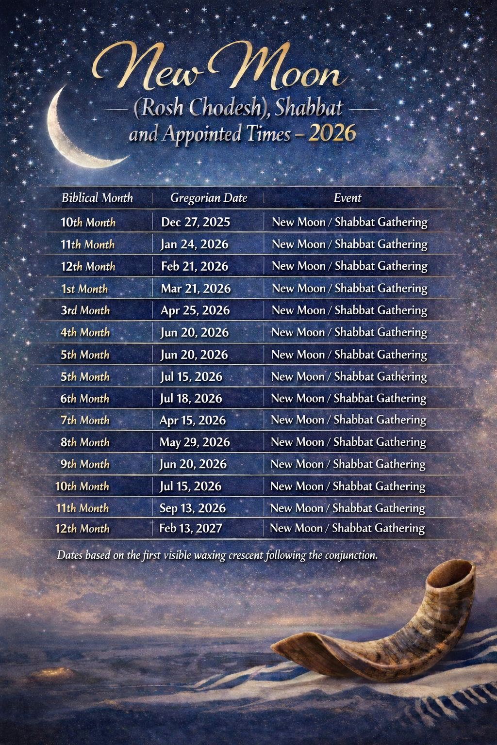 Come worship with us on our New Moon celebrations! Dates are the first Sabbath of the month.